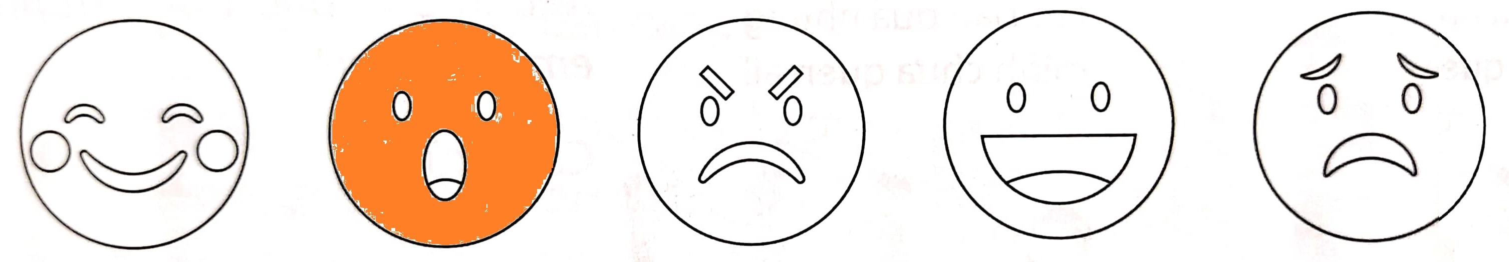 Nhớ lại một lần em tranh cãi với bạn, chọn biểu cảm mà em đã thể hiện và tô màu vào khuôn mặt tương ứng ở trên.