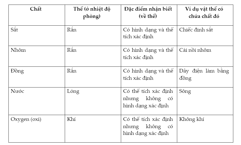- Thể khí: có khối lượng xác định nhưng không có hình dạng và thể tích xác định