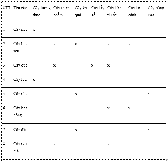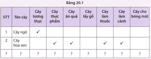 Kể tên một số loại cây có ở địa phương và nêu vai trò sử dụng của chúng theo bảng 20.1.